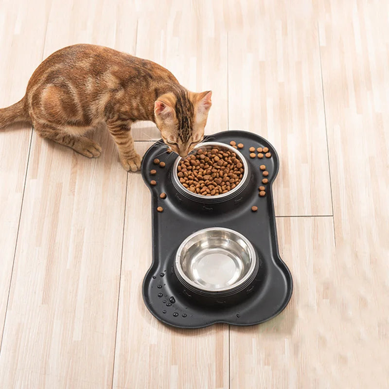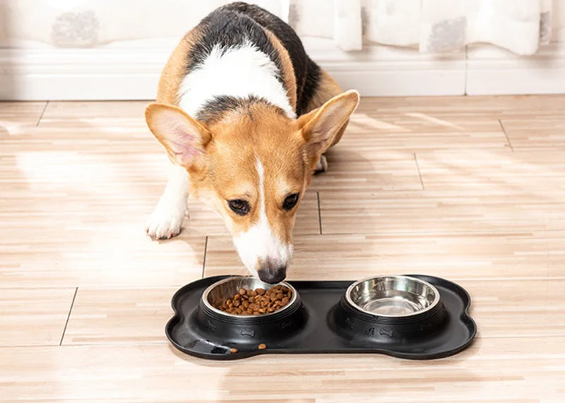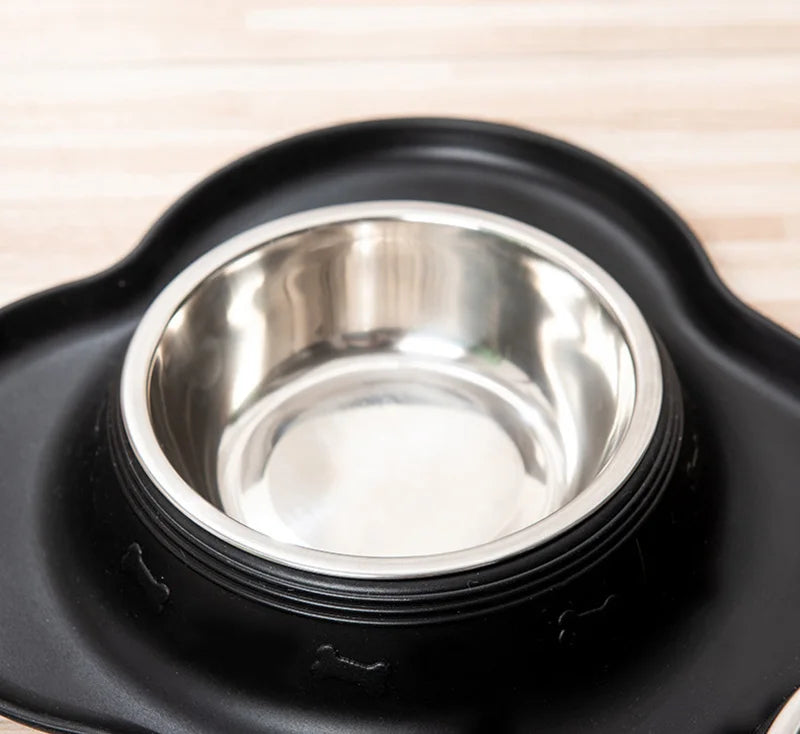 Comedero anti deslizante de acero inoxidable con goma en forma de hueso